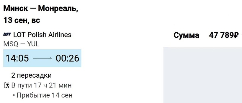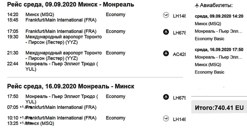 Рейсы Минск — Монреаль осуществляет только одна авиакомпания - Белавиа. Минимальная стоимость билета составит 54 852 рублей.