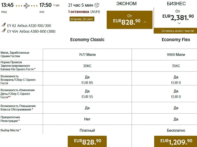 дешевле на 14500 ₽, чем у Etihad, и на 24500 ₽,