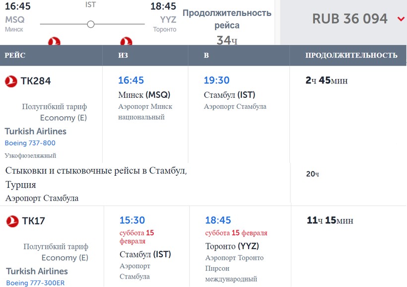 Рейсы Минск — Торонто осуществляют следующие авиакомпании: