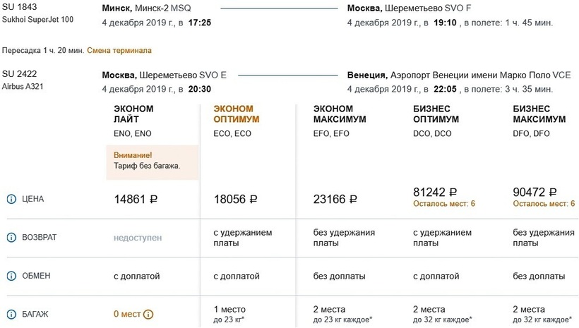 Другие варианты перелета можно посмотреть у авиакомпаний: