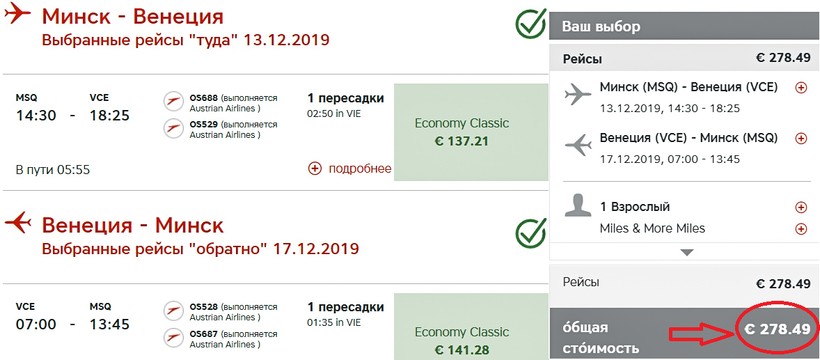 Из белорусской столицы в Венецию прямые перелеты не осуществляются, но выполняется большое количество транзитных рейсов. Оптимальные варианты полетов с одной пересадкой предлагают следующие операторы: