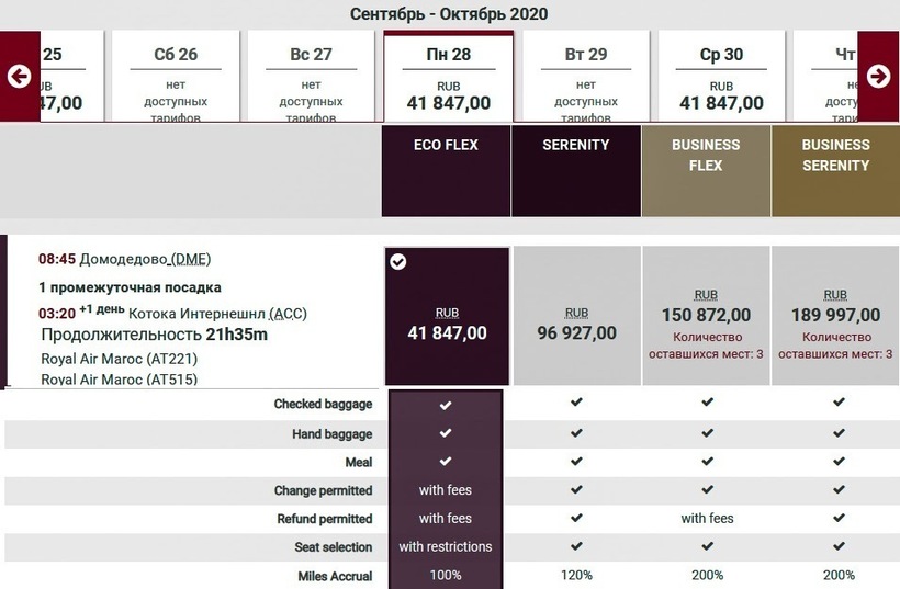 Тем, кто летит по направлению только туда, в осенне-зимнее время однозначно рекомендую выбрать путешествие с Tap Air Portugal. В период с апреля по ноябрь выгоднее всего преодолевать путь в одну сторону с «Аэрофлотом» и «Брюссельскими авиалиниями». Я летала в обе стороны и предпочла авиапутешествие с Royal Air Maroc, так как билеты у данного оператора были дешевле на 29000 ₽, чем у «Турецких авиалиний», на 30500 ₽, чем у KLM, на 28500 ₽, чем у «Аэрофлота» и Brussels Airlines, и на 10500 ₽, чем у португальского авиаперевозчика.