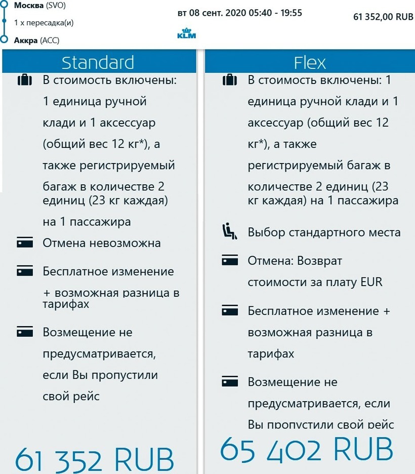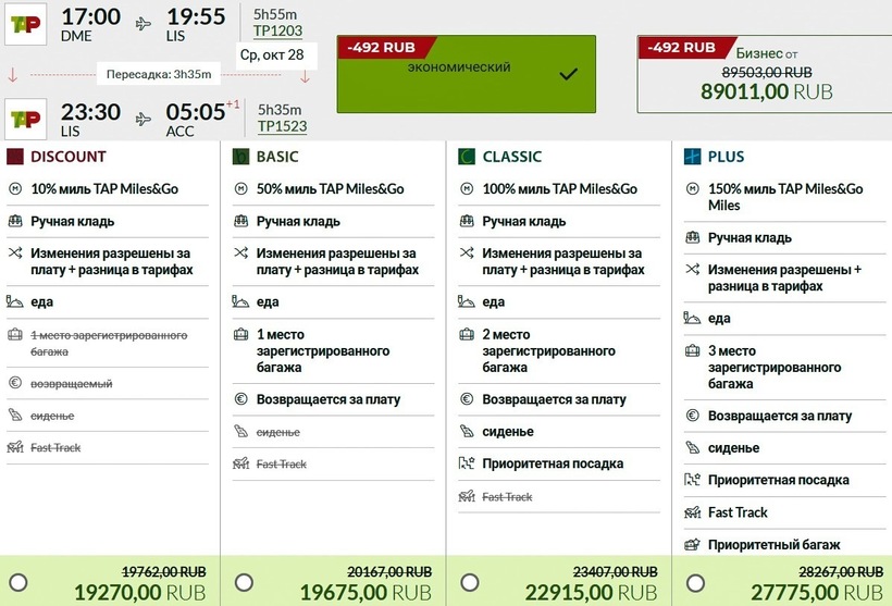 от 64500 ₽ (800 €). Бизнес-класс — от 95000 ₽