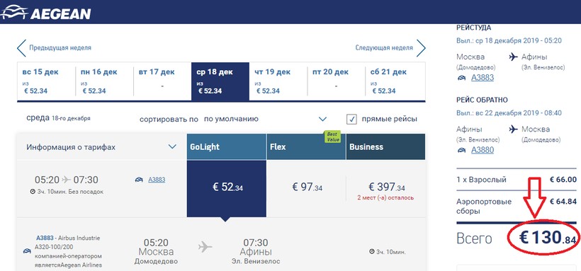 А в цене авиабилетов греческий перевозчик имеет небольшое преимущество перед «Аэрофлотом». Так, средняя стоимость билетов только туда составляет 9000–11300 руб. (с багажом), туда-обратно около 26000 ₽.