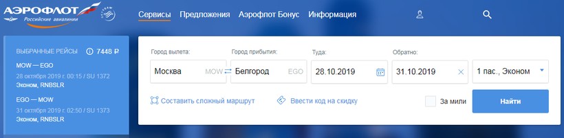 «Аэрофлот». Полеты выполняются на борту Sukhoi Superjet 100 три раза в день (утром, вечером и в ночное время). Стоимость билетов начинается от 4000 р. по тарифу «Эконом Лайт» за неделю до вылета. Лететь придется без багажа, но можно взять ручную кладь до 10 кг. Если вы пользуетесь бонусной программой авиакомпании, на ваш счет будет зачислено 75% миль.