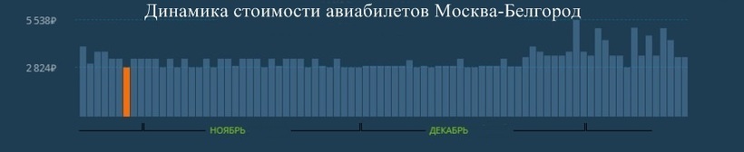 В зависимости от месяца, минимальная стоимость билета на самолет Москва — Белгород в одну сторону («туда») колеблется от 8 245 (в ноябре) до 10 180 рублей (в январе) , максимальная может доходить до 19 339 рублей, а в среднем купить билет можно за 8 751 – 9 673 рубля.