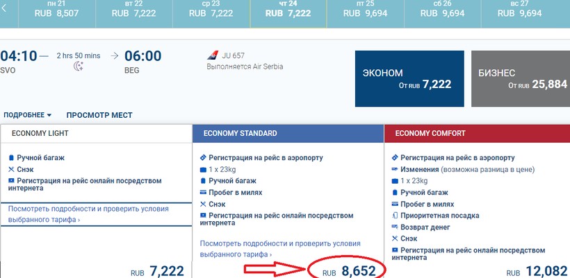 Сербского оператора также рекомендую выбрать и тем, кто привык летать максимально комфортно, но хочет и сэкономить, потому что цены на путешествие в бизнес-классе у него дешевле аэрофлотовских почти в три раза (напомню, 22500 ₽ против 67500 ₽).