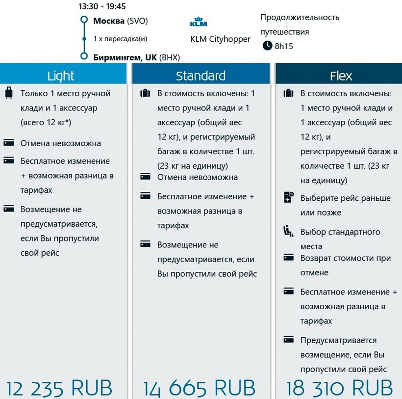 ручной кладью — 14000–19500 ₽ (175–245 €),