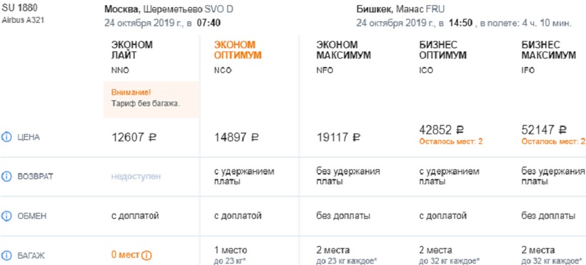 Этих киргизского и российского операторов я решила объединить в одну группу, потому что по стоимости авиабилетов и по уровню сервиса они похожи.