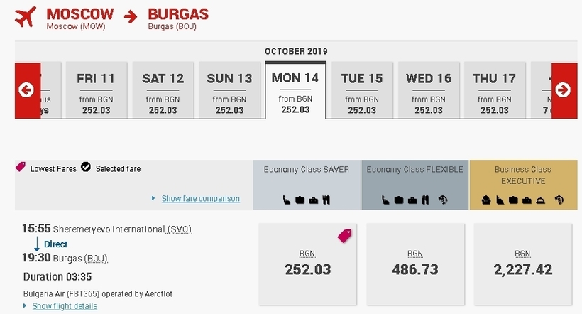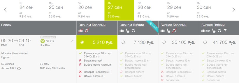 ИрАэро (IO 903) Airbus A319 | 10:15 Москва (DME) | 3 ч. 15 мин | 13:30 Бургас (BOJ) | пн по 26.09 |