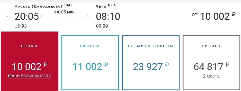 К выбору перевозчика для путешествия в Читу я советую подходить ответственно, поскольку в пути придется провести 6,5 часа, комфорт должен быть на первом месте. Для коротких маршрутов продолжительностью 1–2 часа я выбираю бюджетные тарифы без питания, дополнительных опций, а вот для такого длительного — не экономлю.