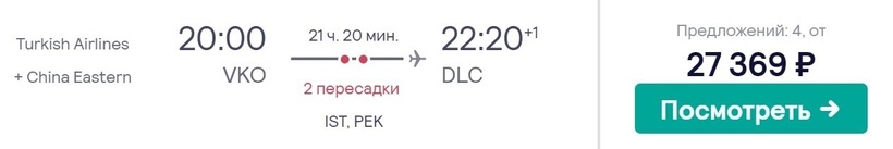 Билеты «туда-обратно» в декабре обойдутся вам всего в 32 534 рубля, а в августе придется заплатить за них не менее 49 989 рублей. В среднем же, долететь до Даляня и вернуться в Москву можно за 42 404 рубля.