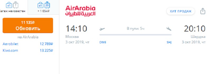 Air Arabia — арабская авиакомпания-лоукостер, но цена билета почти такая же, как у «Аэрофлота». Мультимедиа предоставляют бесплатно, а вот за еду придется доплатить. Стоимость (при покупке за четыре недели) — от 11 000 рублей в одну сторону для экономкласса. Лучше сразу брать билет и в обратную сторону, чтобы потом не было проблем (неподходящий рейс, отсутствие прямых перелетов, дороговизна).