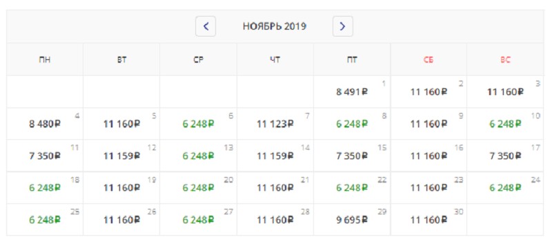Если сравнивать стоимость перелета в разных авиакомпаниях, то самые дешевые билеты будут у а/к Флайнас – от 8 126 рублей. А вот у а/к Флайдубай цены начинаются от 22 991 рублей.