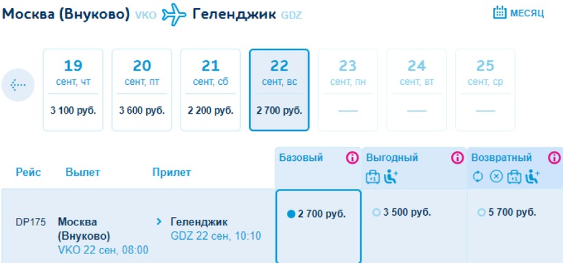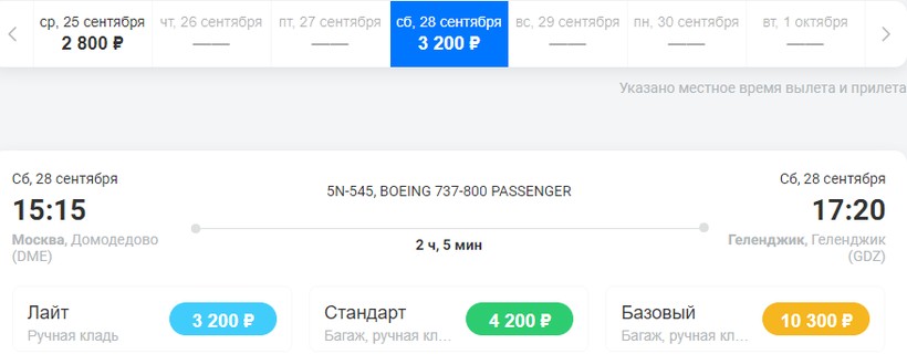 Перелеты предусмотрены как прямые, так и со стыковками. Однако имеется один минус — в конце октября прекращаются все рейсы в Геленджик.