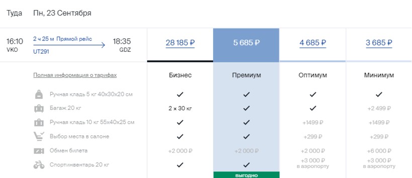 «Базовый». Имеет минимальный набор удобств, бесплатно можно провозить только ручную кладь.