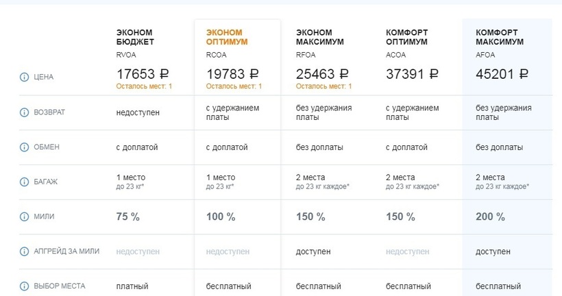 «Эконом Бюджет». Он невозвратный. В стоимость включено 1 место багажа до 23 килограммов. Билеты от 17650 рублей.