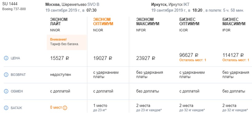 | Аэрофлот (SU 1442) Boeing 737-800 | 21:40 Москва (SVO) | 5 ч. 55 мин | 08:35 Иркутск (IKT) | 26, 27, 28, 29, 30, 31 октября, 1, 2, 3, 5, 6, 7, 8, 9, 10, 12, 13, 14, 15, 16 ноября, … |