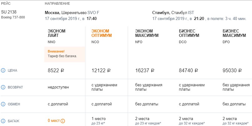 | Аэрофлот (SU 2160) Airbus А321 | 11:45 Москва (SVO) | 5 ч. 20 мин | 17:05 Стамбул (IST) | 26 октября |