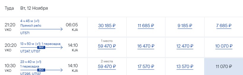 У S7 и «Аэрофлота», конечно, наиболее удобное расписание, однако перелеты с ними стоят довольно дорого.