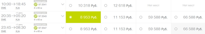 S7 может похвастаться наличием большого количества вылетов до Красноярска — от двух до трех каждый день.