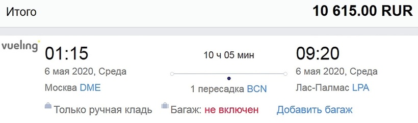 Если вы летите в Лас-Пальмас на острове Гран-Канария, не ищите прямой рейс. Из России туда можно добраться только с 1–2 пересадками. Такой вариант авиапутешествия предлагают компании: