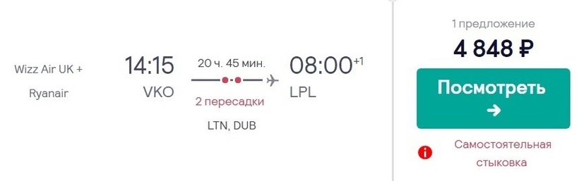 Другие варианты перелета можно посмотреть у авиакомпаний: