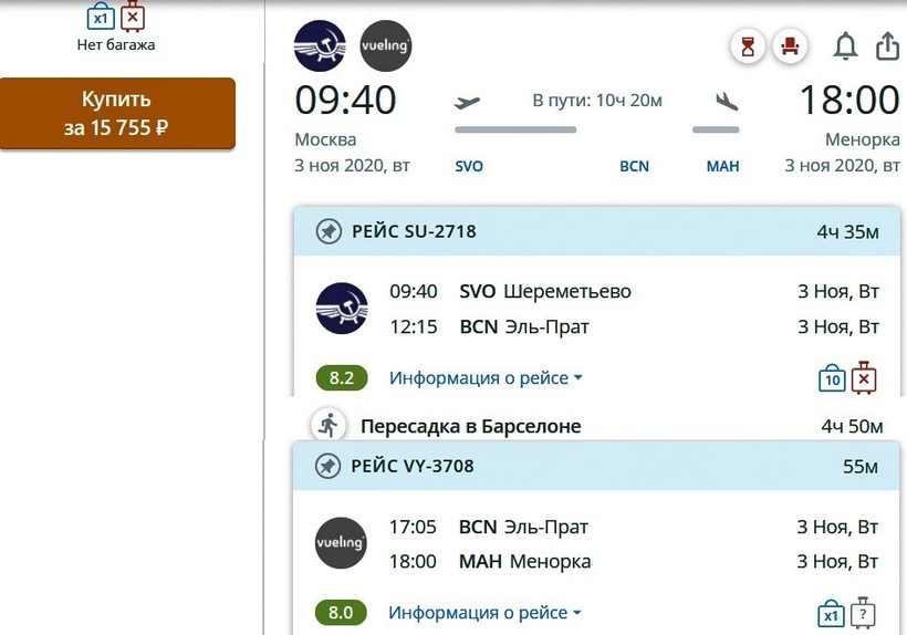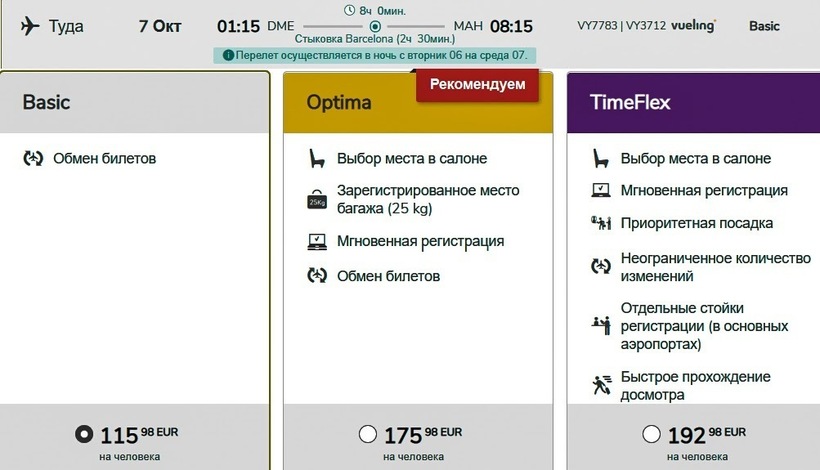 и Iberia, на 9000 ₽, чем у Vueling, и на 9500 ₽, чем