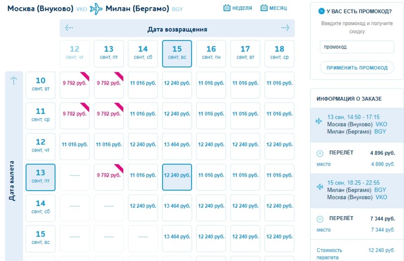 Билеты «туда-обратно» в ноябре обойдутся вам всего в 24 720 рублей, а в июле придется заплатить за них не менее 48 638 рублей. В среднем же, долететь до Милана и вернуться в Москву можно за 34 972 рубля.