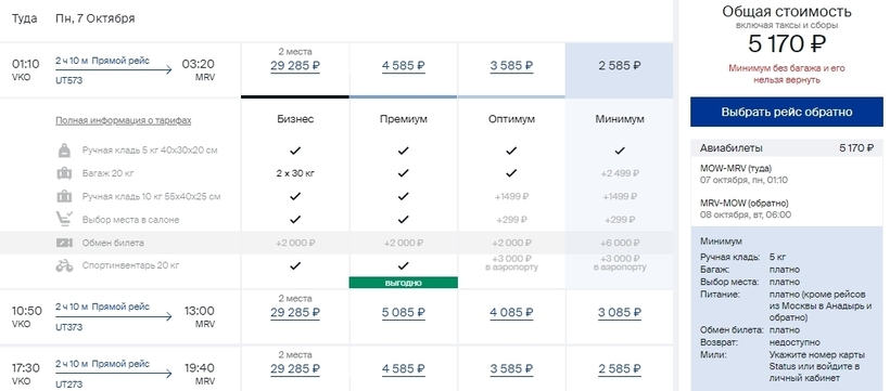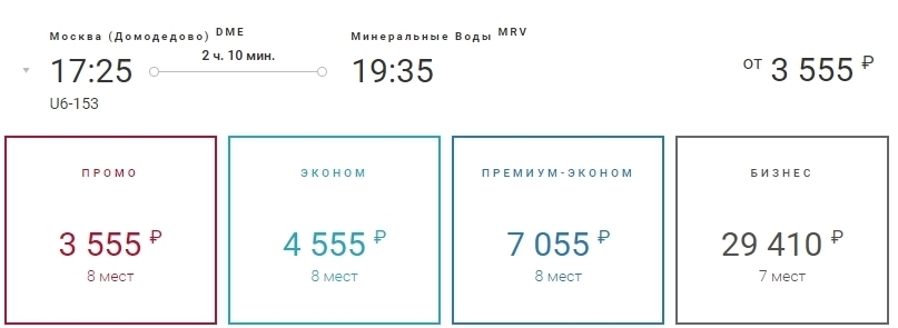 Получается следующая картина: у всех авиакомпаний, кроме «Аэрофлота», цены почти одинаковы — самые бюджетные тарифы обойдутся в 5000–7000 рублей в обе стороны (за 1–1,5 месяца до вылета). Дополнительные опции оплачиваются отдельно, сумма зависит от предложений перевозчиков. Я всегда беру тарифные планы сразу с багажом, в Минеральные воды с маленькими сумками не езжу.