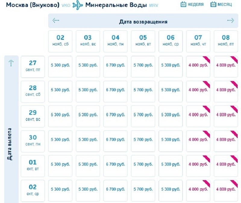 Билеты «туда-обратно» в марте обойдутся вам всего в 5 121 рубль, а в апреле придется заплатить за них не менее 16 608 рублей. В среднем же, долететь до Минеральных Вод и вернуться в Москву можно за 11 494 рубля.