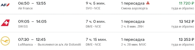 Учитывая тот факт, что маршрут популярен среди туристов, а только две авиакомпании осуществляют прямые полеты из Москвы в Ниццу, я искала варианты со стыковкой в других городах Европы. Конечно, удобнее добираться напрямую, каких-то 4 часа и ты на месте, тогда как авиапутешествие транзитом занимает от 7 часов.