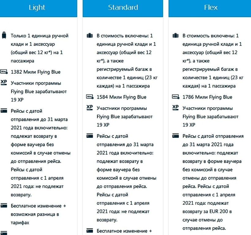 Light — везти разрешается только ручную кладь, обменять билет или отказаться от него нельзя;