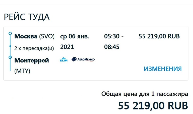 На время карантина правила немного изменены — сейчас (ноябрь 2020 года) время вылета разрешено менять бесплатно, независимо от выбранного тарифа. Если вы покупаете авиабилет только в одну сторону, то при бронировании за 1,5 месяца можно улететь за 55000 ₽ по тарифу Standard, но не Light.