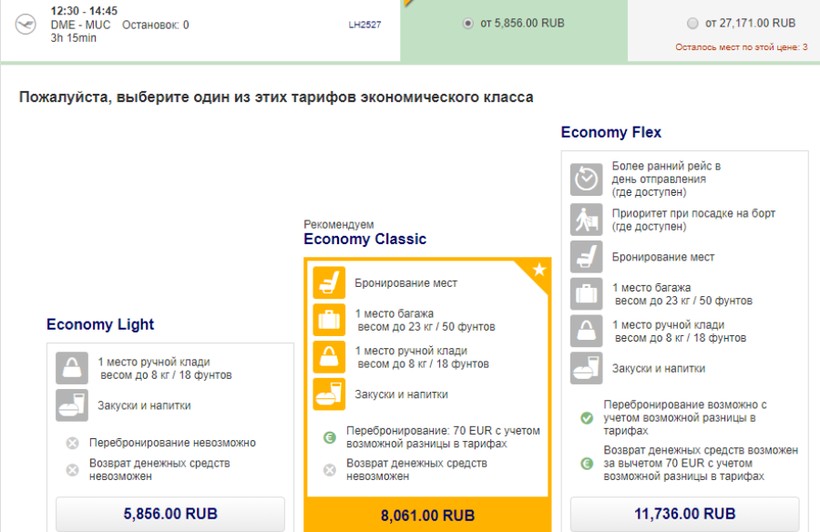 Кроме того, что цены на перелеты у Lufthansa увеличиваются на пиковые даты (как и у российских компаний), стоимость авиабилетов у немецкого перевозчика возрастает также по пятницам. Так что на этот день недели советую сравнивать цены у других авиакомпаний, и выбирать более бюджетный вариант.