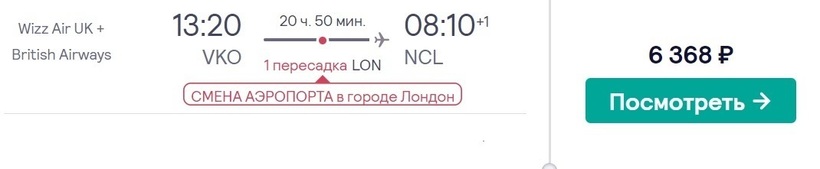 Также у этих авиакомпаний есть менее продолжительный транзитный рейс. Общее время в пути — 11 часов. Также предстоит смена воздушной гавани (из Лутона нужно попасть в Хитроу). На стыковку отводится около 6 часов. Стоимость билетов на самолет примерно такая же — от 6800 рублей (за месяц).