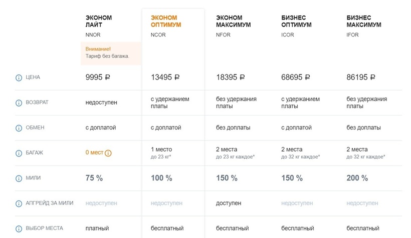 «Оптимум». Можно сдать 1 чемодан в багаж (весом до 23 кг). Ручная кладь — 1 место (до 10 кг). Выбор места бесплатный.