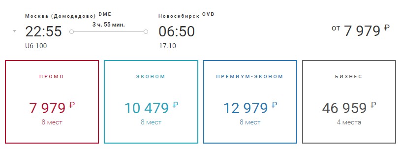 S7 Airlines. Максимум доступных рейсов — в расписании их от 3 до 7 каждый день. Билет до Новосибирска по минимальному тарифу (только ручная кладь) обойдется в сумму около 10 тысяч (не зависит от даты покупки).Туда-обратно можно слетать за 17 тысяч руб. Бизнес-класс в обе стороны — от 99 000 р. Возможна оплата милями. Приятный бонус — недорогой тариф «Гибкий» позволяет бесплатно обменять билет, если до вылета осталось более 40 минут. Меня это здорово выручает в случае изменения даты вылета. Если у вас есть вероятность такого форс-мажора, рекомендую брать билет по этому тарифу. Вылет из Домодедово.