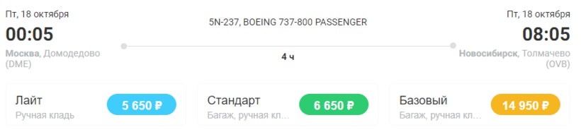 | Smartavia (5N 237) Boeing 737-800 | 00:15 Москва (SVO) | 4 ч. 00 мин | 08:15 Новосибирск (OVB) | 27, 30, 31 октября, 1, 3, 6, 7, 8, 10, 13, 14, 15, 17, 20, 22, 24, 27, 29 ноября, 1, 4 декабря, … |