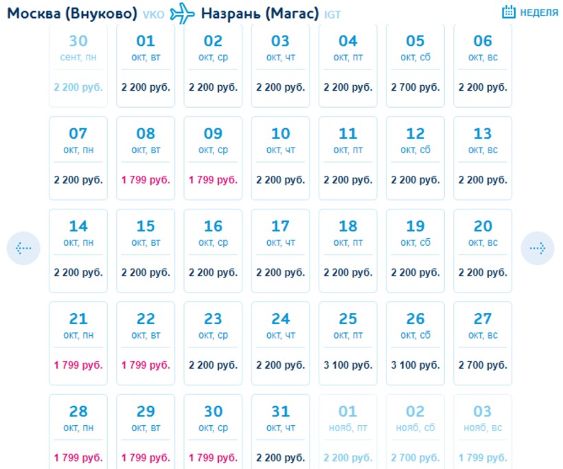 Проанализировав цены у «ЮТэйр» на полгода вперед, я для экономии также могу рекомендовать оформлять билеты заранее, потому что купить их минимум за 3 месяца до вылета можно только туда за 3200 ₽, в обе стороны — от 5600 ₽.