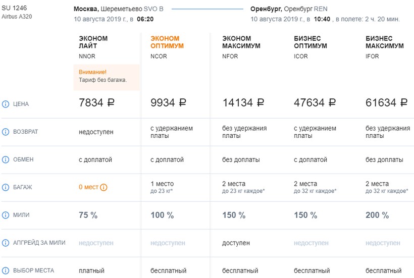 Аэрофлот (SU 1242) Boeing 737-800 | 06:30 Москва (SVO) | 2 ч. 15 мин | 10:45 Оренбург (REN) | 28 сентября |