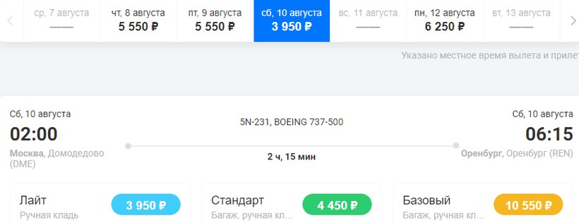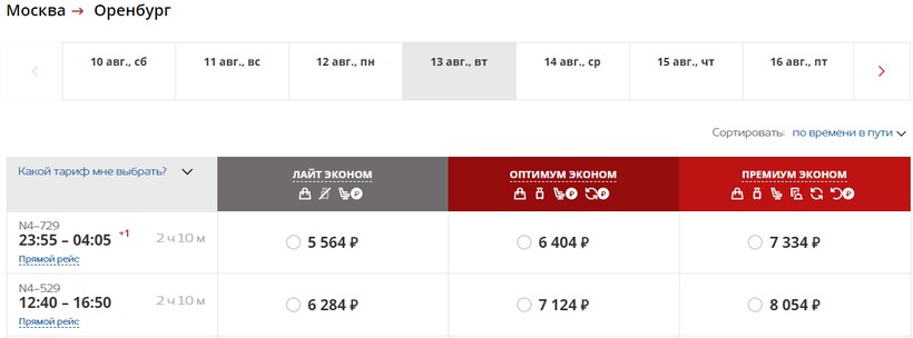 Nordwind (N4 77) | 10:55 Москва (SVO) | 2 ч. 10 мин | 15:05 Оренбург (REN) | 3 октября |
