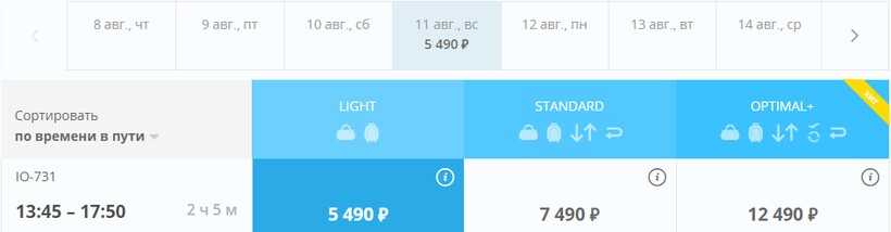 И несколько фишек от меня, как сэкономить у авиаперевозчика. :) Если вы летите на пару дней и можете ограничиться малым количеством вещей, выберете перелет только с ручной кладью — авиабилеты обойдутся всего от 4000 ₽. А еще немного дешевле будут билеты при бронировании минимум за месяц до авиапутешествия — от 3600 ₽ (с ручной кладью).