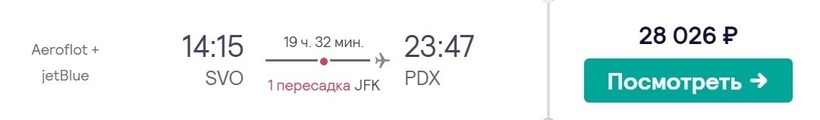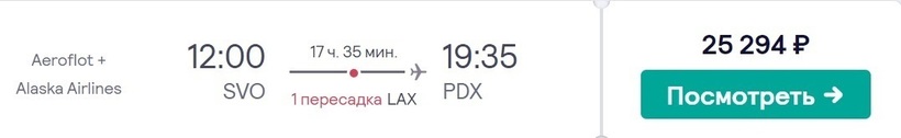 Транзитные рейсы с двумя пересадками — это не более дешевый вариант авиапутешествия, но билеты по приемлемым ценам за месяц до вылета найти вполне реально. Так что его можно рассматривать, если на перелеты с одной пересадкой не найдете бюджетные авиабилеты на нужные даты. Например, можно долететь сначала до Стамбула с Turkish Airlines, затем с этим же авиаоператором совершить полет в Лос-Анджелес, а заключительный рейс в Портленд осуществить с Alaska Airlines. На стыковки в общей сложности уйдет 9,5 ч., а дорога до места назначения займет 1 сутки и 4,5 ч. Авиаперелет по маршруту Москва — Стамбул — Лос-Анджелес — Портленд доступен ежедневно. Стоимость билетов только туда — от 26800 рублей (за месяц и более).