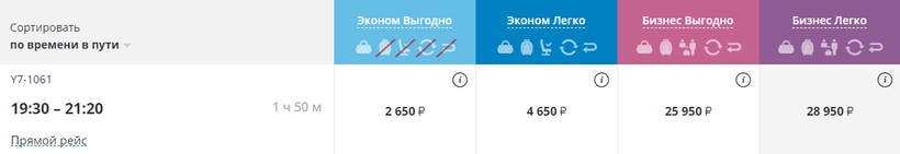 Есть большой выбор тарифов в экономкласс: