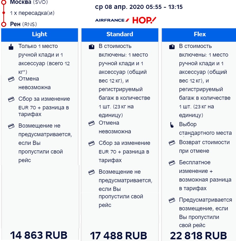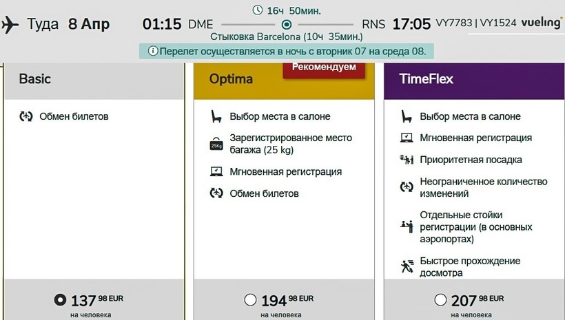 Я летела по маршруту в зимнее время и предпочла для этого периода оптимальный вариант преодоления пути (а для полетов туда-обратно и единственный возможный) — с Air France. Тем, кто летит в обе стороны в мае или сентябре-октябре, рекомендую выбрать путешествие на крыльях авиакомпании Lufthansa, у которой в эти месяцы цена билетов туда-обратно ниже на 6000 ₽, чем у Air France. А самый дешевый вариант полета в одну сторону предлагает лоукостер Vueling. Любителям максимального комфорта в период выполнения авиарейсов Lufthansa советую лететь с немецким перевозчиком, билеты в бизнес-класс у которого вдвое дешевле, чем у Air France. В остальное время года полет в данном классе возможен только с французским оператором.