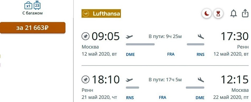 Между российской столицей и Ренном прямые авиаперелеты не осуществляются, но преодолеть маршрут можно транзитом. Во французский город рейсы выполняет не очень много авиакомпаний, а полеты с одной стыковкой из Москвы предлагают только три оператора: