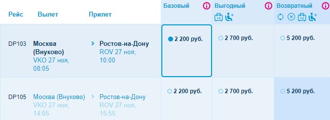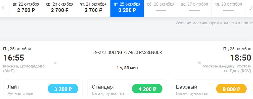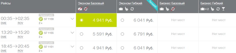 | S7 Airlines (S7 2127) Airbus A320 | 23:50 Москва (DME) | 2 ч. 05 мин | 01:55 Ростов-на-Дону (ROV) | ежедневно с 30.10 |