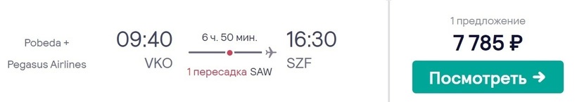 Это более дешевый вариант, чем перелет с традиционными авиакомпаниями, его я и выбрала. Полетела с «Победой» и Pegasus Airlines. Продолжительность перелета вместе со стыковкой — 7 ч. Это один из максимально оперативных способов попасть в Самсун из Москвы. Билеты купите за 7700 рублей (за несколько недель). Вдобавок хочу отметить вполне удобное расписание у перевозчиков — отправление из аэропорта Внуково утром (не рано), прибытие в Самсун ближе к вечеру. Учтите, что разницы во времени между населенными пунктами нет.