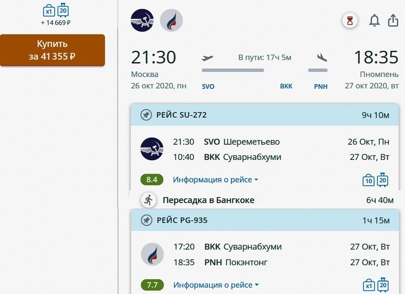 Учитывая ограниченное число рейсов с одной стыковкой в Сиануквиль, могу рекомендовать альтернативный вариант преодоления маршрута — через аэропорт камбоджийской столицы Пномпень (расположен примерно в 180 км от Сиануквиля, куда можно доехать за 4–5 ч. на автобусе). Долететь из российской столицы в Пномпень можно со следующими операторами: